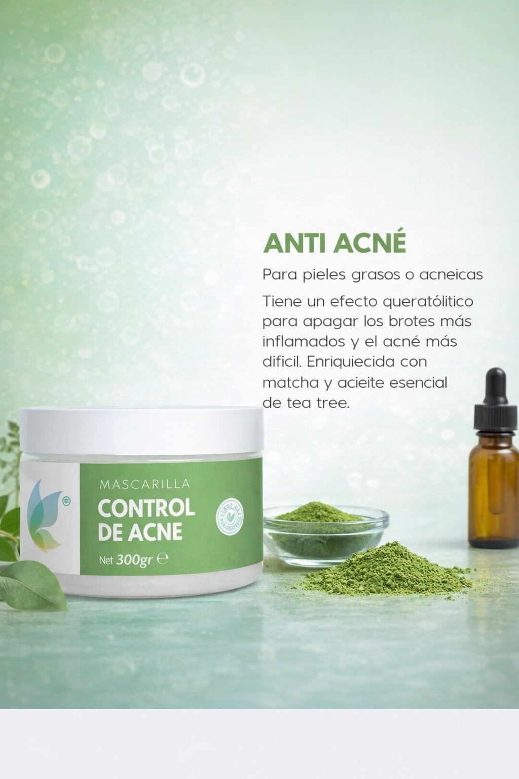 La Mascarilla Control de Acné está formulada para combatir brotes activos, regular la producción de grasa y mejorar visiblemente la textura de la piel. Ideal para pieles grasas o con tendencia acneica que necesitan un tratamiento efectivo pero equilibrado.