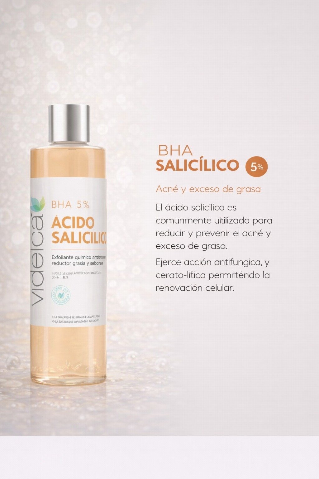 A diferencia de otros ácidos, el BHA actúa directamente en el sebo, convirtiéndolo en un aliado clave para pieles grasas y con tendencia acneica.