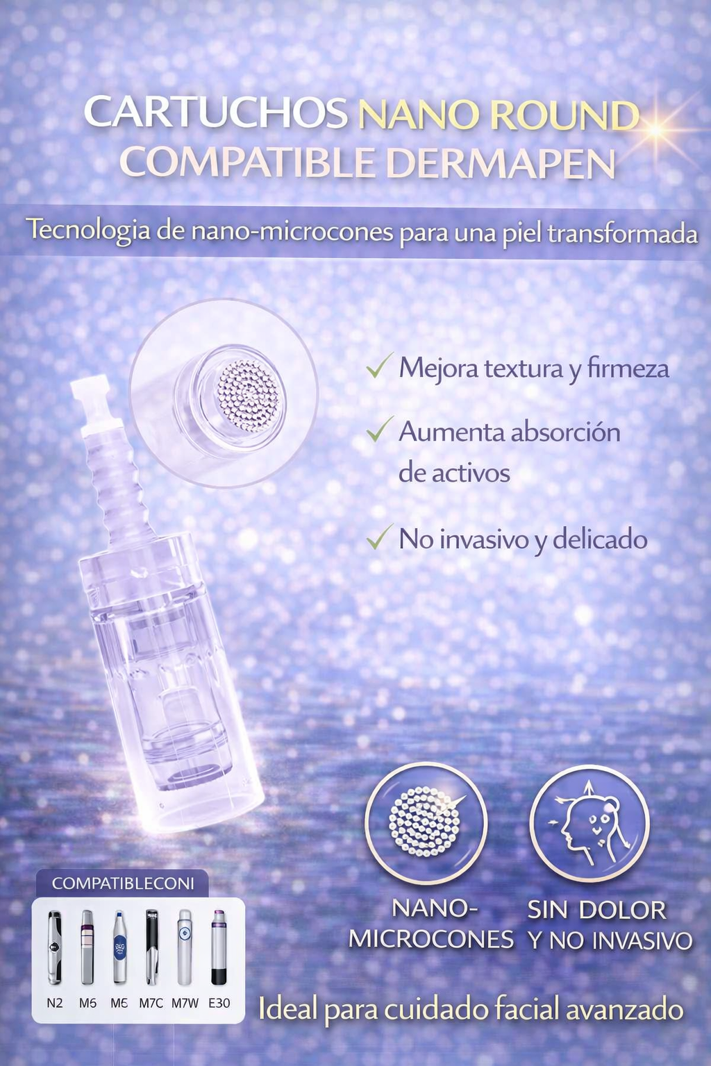 Diseñado para tratamientos superficiales como BB Glow, Hidralips y chapetes, este cartucho no penetra profundamente, lo que lo hace perfecto para pieles sensibles y zonas delicadas.